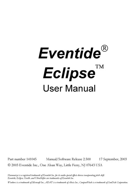 Up for sale is an original eventide eclipse manual. Lastmanuals provides you a fast and. Web eventide eclipse user manual part number 141045 manual/software release 3.000 2004 eventide inc., one alsan way, little ferry, nj 07643 usa